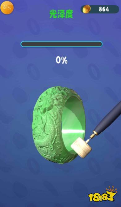 点击切割好的玉石,选择“抛光”的选项,拿起抛光道具划动你的物品,不断点击积累能量槽,能量槽会不断升级,之后就会实现满级,这时就完成。