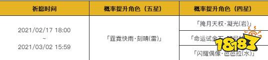 活动期间,五星角色「霆霓快雨 刻晴(雷)」的祈愿获取概率将大幅提升。