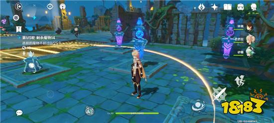 用甘雨冰怪,前面放两个水和两个火,后面放个风,最后放个地雷,其他都不放,直接打满任务。
