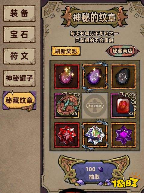 以上就是小编整理的《不一样传说》秘藏纹章获得方法介绍,想知道更多相关资讯攻略的请关注18183手游网。
