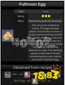 能够复苏角色,并且回复1500点生命值,制作的材料是4个鱼肉+2个虾仁+2个鸟蛋+1包面粉,需要的材料看起来有点多。效果不如胡桃的特殊料理好。