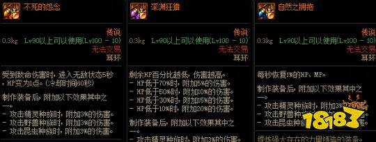 耳环的选择收到左槽的影响,例如深渊狂猎跟不死的意志就完全相违背,绝对不能同时选择。虽然不死的怨念和自然之拥抱都没有伤害词条(固定对部分种族附加伤害不算),但是这里小伙伴们的输出基本足够了,用耳环保命是最好的,所以强烈推荐不死的怨念,危急时刻可以救自己一命。