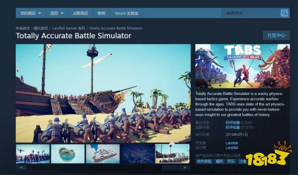 在Steam平台上,《全面战争模拟器》的名字是《Totally Accurate Battle Simulator》。玩家在Steam平台上搜索该名字即可进入商店页面,购买并下载后即可游玩。该款游戏售价为50元,不支持中文。