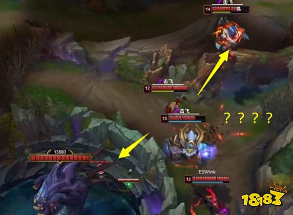 cryin不小心点了,不但把自己弹飞,还把两个队友弹到了龙坑里面。最后自家的奥恩被敌方打死。