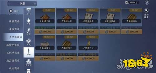 与八荒其他门派的商店一样,神刀门派声望商店可购买的道具,有4本家园书籍、2张家园图纸、八荒主题外观和八荒·锋焰心法。