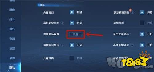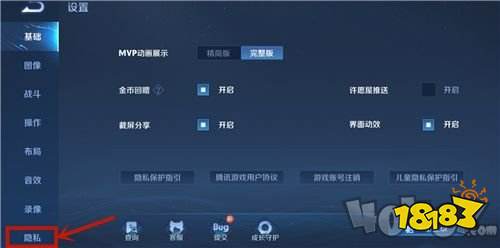 王者荣耀贵族等级显示关闭方法第一步:打开设置界面,选中左下角的【隐私】一项。