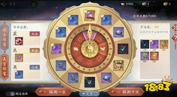 3、在活动界面的左侧有一个每日运势,这个运势会跟奖池一起刷新,金转盘转到对应卦象就会附带运势奖励。
