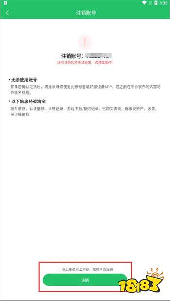 如果您确认注销后,将无法继续使用此账号登录好游快爆APP,您之前在平台发布的内容将作匿名处理。