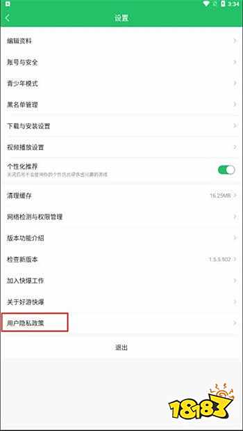 2、进入设置页面后往下滑动找到最底部的【用户隐私政策】查看;