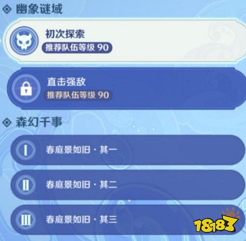 (划重点,重要)挑战界面如下图:分为幽象谜域和森幻千事。