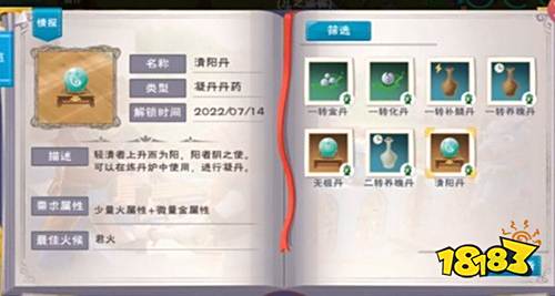 创造与魔法全丹药炼制方法汇总:一转金丹-漪水萍*10,民火;一转化丹:灵火芝*10,民火;一转补髓丹:涌土花*10,臣火。