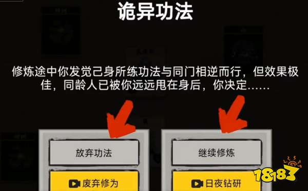 3、然后我们进入诡异功法,选择放弃功法即可获得师傅助力。