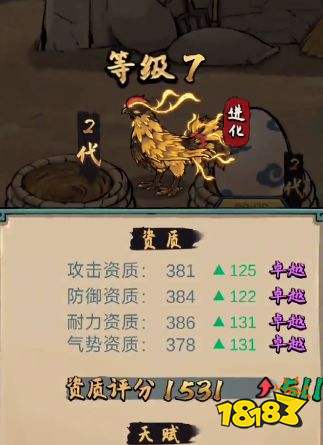 1、通过繁育可以做到斗鸡的品级属性提升。