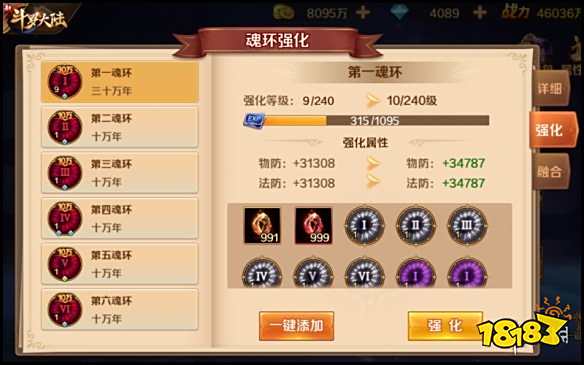 只有十万年以上的魂环才可以进行【融合】来提升魂环的年份。