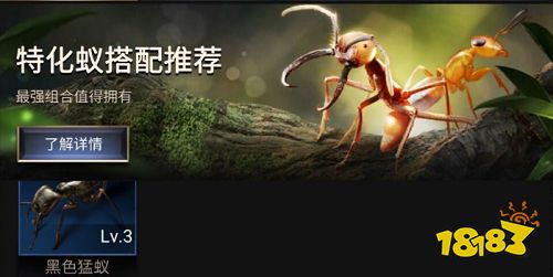 ③测评:两只均带有控制的特化蚁能造成全面压制对手的局面,同时有大量的生命加成,有不错的生存能力。短板是带的三只都是通用蚂蚁,面板属性上的攻击力会较低,可能存在输出不足的情况;两种兵蚁混合搭配,养成周期长,短期难见收益,但成型既毕业。