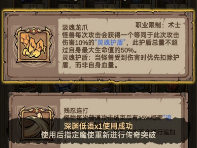 传奇技能术士选汲魂龙爪,其他职业技能随便选,后期随便选一个使魔带愉悦演出回热情
