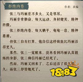 1、这一个故事很难的点在于玩家一般猜不到这是鱼的故事,所以我们只能瞎猜,首先我们可以根据内卷、躺平这种词试着去猜“吃”这种关键词,出现吃之后我们往地点方向联想猜一下餐馆。