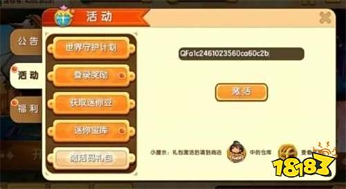 2、在活动里进入激活码,把上面的这些复制到空白处激活即可领取。