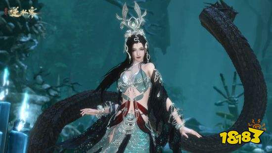 《逆水寒》的山海经系列时装可不仅仅是好看就完事了,其中最大的特色就是可以幻身成山海经中的神兽志怪,巴蛇时装自然也不例外。
