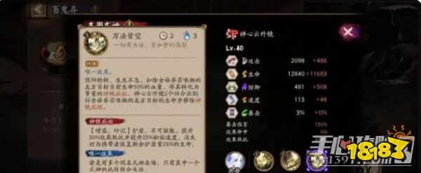 三技能依旧是3火,扣除全体非召唤物友方半血,转化为等量的神镜庇佑,SP云外镜2回合后翻转全体非召唤物友方目标生命并移除神镜庇佑。满级翻转后的 最低生命比例不低于20%