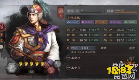 周瑜是游戏中拥有高智力的谋略型武将,无论是智力的基础属性还是成长值都是非常高的,基本上在游戏中可以排到前五名,在统帅上也还不错,拥有比较不错的抗性,非常适合携带高爆发的谋略型战法!在兵种上,周瑜的弓兵也达到了S级,非常适合吴弓阵营的思路!