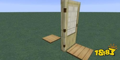 我的世界当中自动门大致可以分为两种,一种是不需要红石电路参与的自动门。也就是最为简单的自动门,我们需要的材料只有普通的门以及压力板。压力板用木制的或者石质的都是可以的。我们将这些东西按照下图的模式摆放: