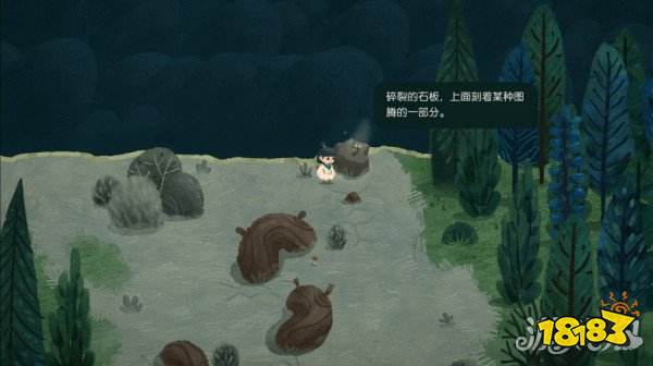 走出这两块迷雾森林后,又会捡到两个碎片,解锁刻着奇怪图腾的大石头的拼图。