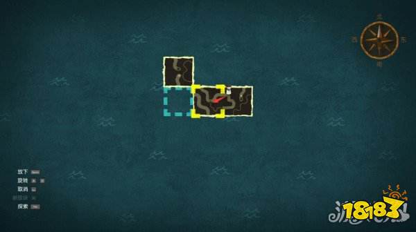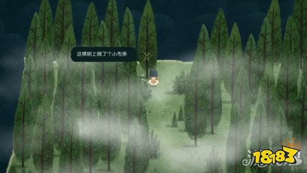 在迷雾重重的森林中,有一道小路的尽头的一棵树上绑着一根布条。只要往绑有小布条的方向拼接拼图往前走就行。