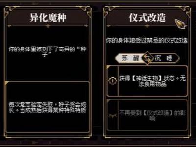 神话生物特质获取需要前置特质异化魔种,该特质需要在谎言与欺诈模组中进入地下仪式厅,在雕像前接收讯息获得。