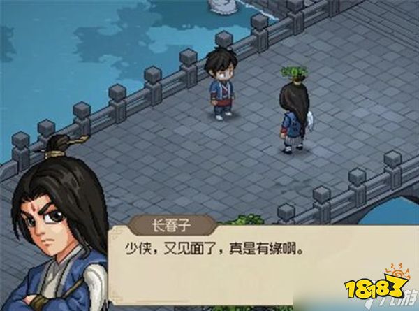 2、跟随邋遢张到霖安后去找npc张春子,完成剧情对话后去找他的师兄或者猴儿酒【张春子位置:左边第一座桥】