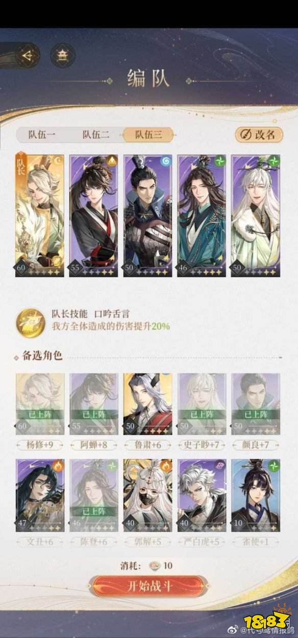 杨修(队长)、阿婵、颜良、陈登、狮子喵。