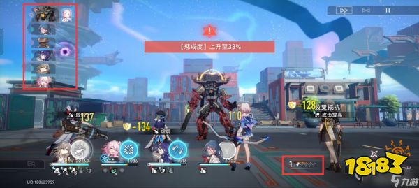 这里还有一点需要注意,在难度比较大的越级挑战中,甚至可能出现一波金鱼没处理完,金人又开始攒惩戒度了,这里的话可以分成两种情况,一种是到金人出手,它开始攒了,那就停止使用战技和大招攻击,用普攻去点杀血量少得金鱼;另一种是用大招或战技打金人发现它在攒,那也不用慌,还有两个回合,该补盾补盾,该补血补血,有金鱼就普攻抽金鱼,没金鱼就普攻抽金人。