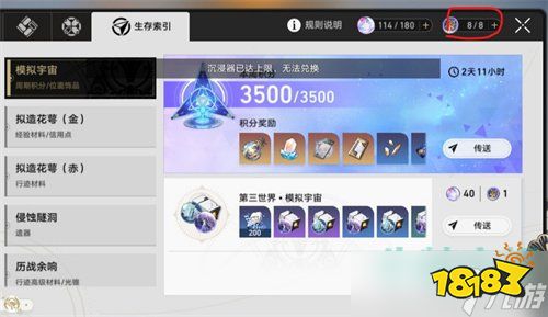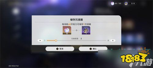 3、打开之后就可以消耗40点的开拓力来兑换获取一个沉浸器,兑换上限是8个;