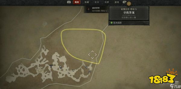 当任务目标的位置并不明确时,系统会在地图上用黄色的线圈出一个大致范围,我们只需要在给定的范围内寻找即可。