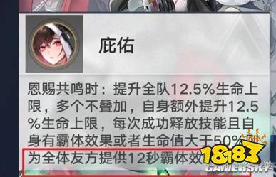 核心是激活恩赐共鸣时,技能【归寂】可以对当前血量高于95%的敌人造成8%最大生命值的伤害。(对于团本的朱厌来说是一条血的2/5,朱厌血条*5)