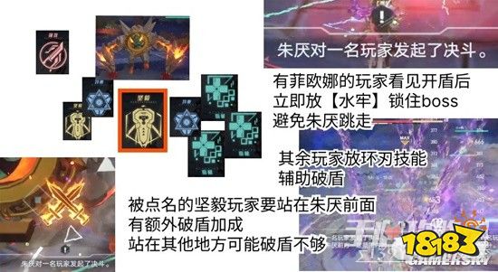 3.boss出盾时菲欧娜用水牢控制,开环刃技能辅助破盾。(朱厌开盾间隔2分钟)