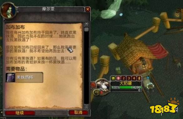 5、回来之后再次和摩尔亚对话,给她一杯黑铁啤酒完成任务。