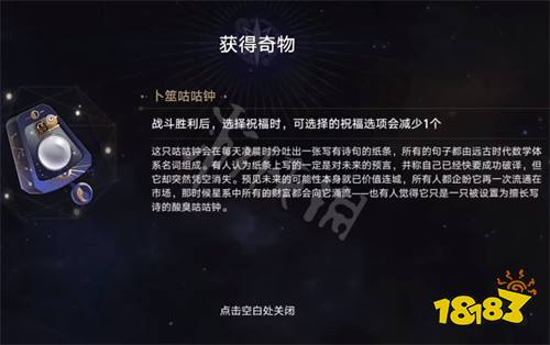 大家在游戏中遇到“银河商人 (其一)”事件后,选择第二个选项“令人惊讶的奇物”,就可以获取【卜筮咕咕钟】了。