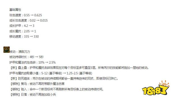 护甲与魔抗窃取最小值:5-12 (基于等级) → 1.25-2.5 (基于等级)