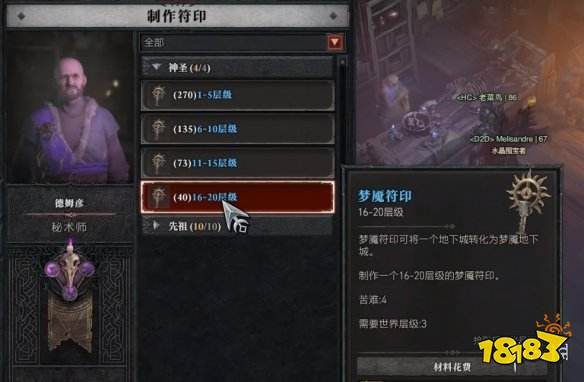 2、完成任务后,前往秘术师(洗词条的npc)处,可以制作梦魇符印。