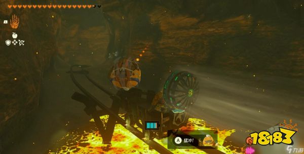 在前方搭乘矿车围着中心的小岛挺进,在最外侧的轨道上反攻靶子切换轨道进来前方的岩穴内。