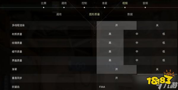 下面四个画面品质选项:材质质量会影响游戏中墙壁和环境的细腻程度,对帧数影响较大;