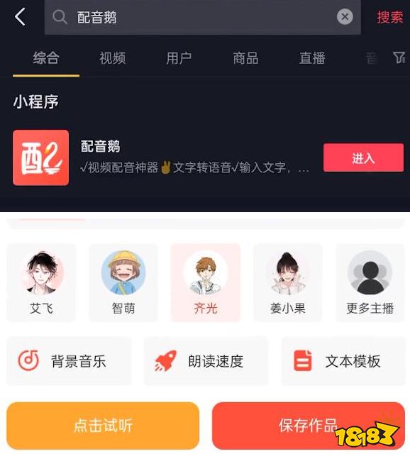 关于这种配音的制作方式其实很简单,首先在小程序找到“配音鹅”然后把提前剪辑好的文案放到里面,最后选择“齐光”的声音
