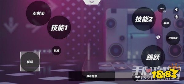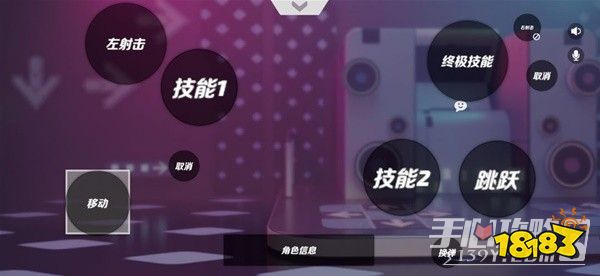 主要是左上角食指进行射击键和一技能。右边进行转向及二技能的释放,长摁跳跃键就可以实现边跳跃边转向,非常方便。右边的开火键直接隐藏了,没什么用,靠左边开火就可以了。大招目前释放频次相对较低,所以小小的放在原来的位置即可。