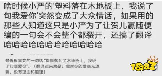 该节目在一个游戏环节需要用3个毫不相关的词语造成一个通顺的句,在一轮游戏中,词语是塑料、木地板、我爱你严浩翔便随口说了这个句子:塑料落在了木地板上,我说了句我爱你。由于这句话不符合逻辑,他被淘汰了,但后来这句话被某些文案号挖掘出来,觉得这句话虽毫无逻辑却有些浪漫,于是强行加戏,说这句话翻译过来的意思是:我对你的爱毫无逻辑不需要理由和道理。