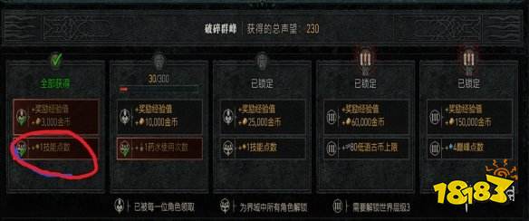 3、每个区域会按照声望的进度奖励4点巅峰点。