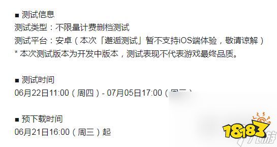 内测时间:06月22日11:00(周四)-07月05日17:00(周三)
