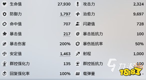 在花绘(圣诞)的基础面板中,玩家们应该重点关注的就是与她技能数值息息相关的治疗力,花绘(圣诞)的基础治疗力在不计算装备部件的情况下,能够达到7183,是一个比较惊人的数值,即使是在所有治疗师中都算得上排名靠前。