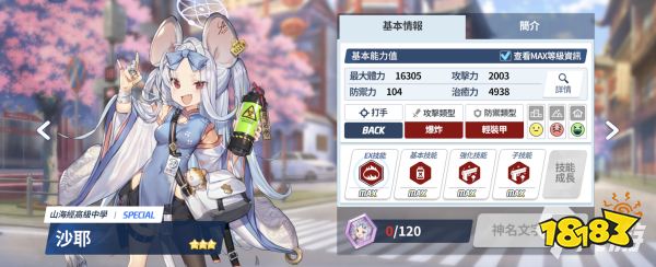 作为一名初始三星爆炸攻击类型角色,药子沙耶在队伍中是SPECIAL位置,主要负责在后方为队友提供战术支援,擅长在室内作战。玩家们如果希望通过送礼物提升药子沙耶的好感度,那么维生素软糖、百科全书和The supplement是最好的选择。