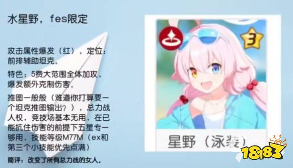 而如果玩家想要一个主力输出角色的话可以抽去未花,未花作为贯穿第一主c自身输出十分强悍,无论是竞技场还是平时推图都是非常强力的角色,可以帮助玩家在前期就拥有高额的输出伤害,自从是这个角色还拥有一定的承伤能力可以缓解队伍的压力。
